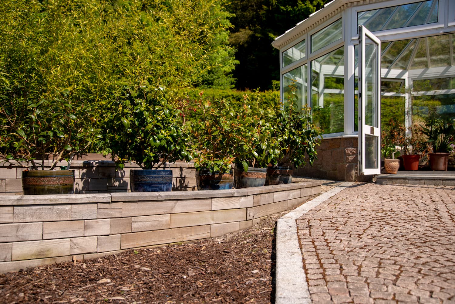 Anche se è stato realizzato nel 2013, il giardino di questo cliente oggi è ancora splendido come quando è stato costruito, oltre 10 anni fa! Con il passare del tempo, il legno WoodBlocX passa dal marrone dorato al grigio argento.
