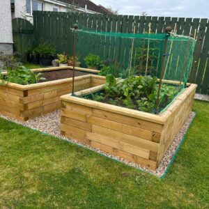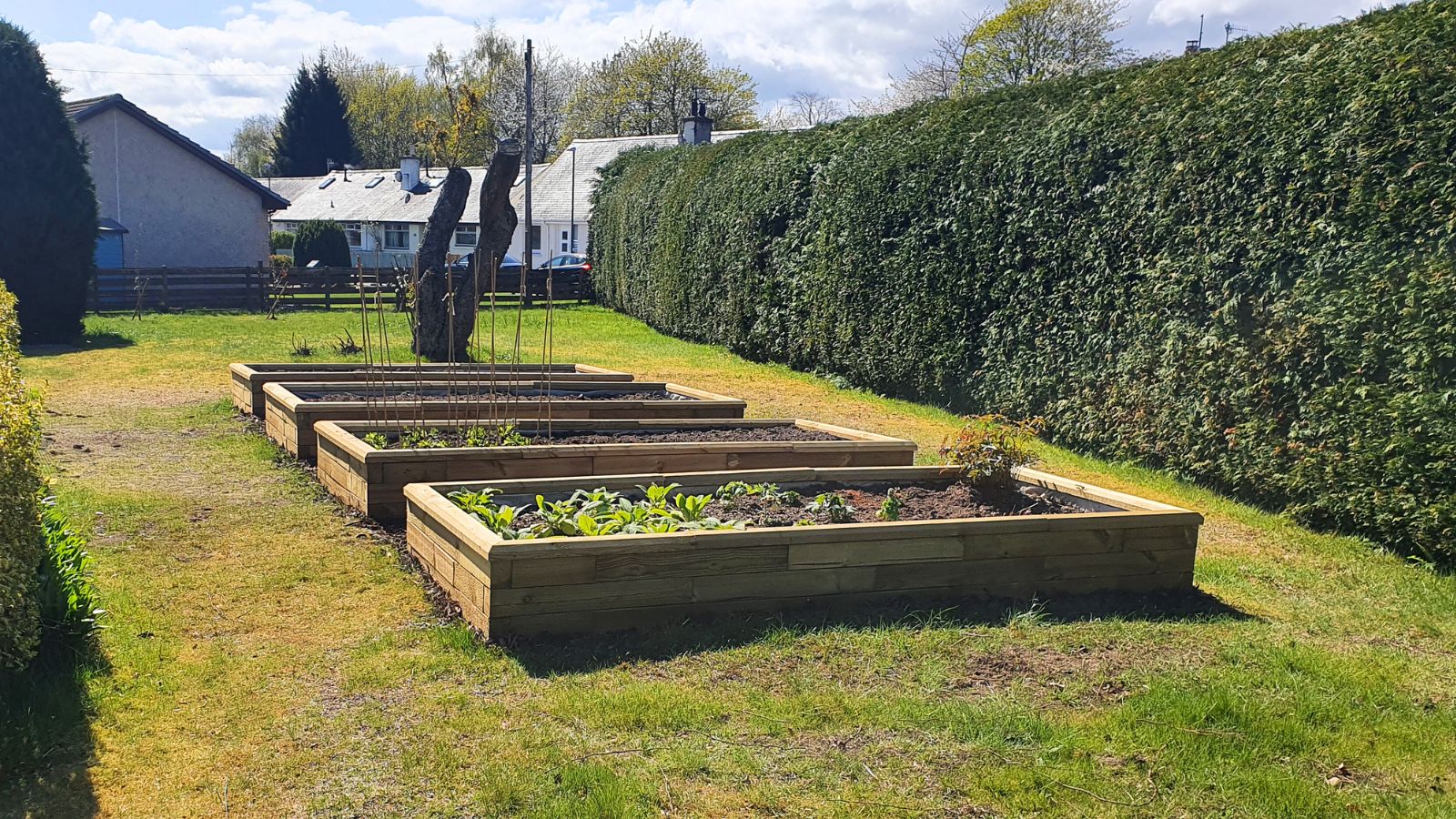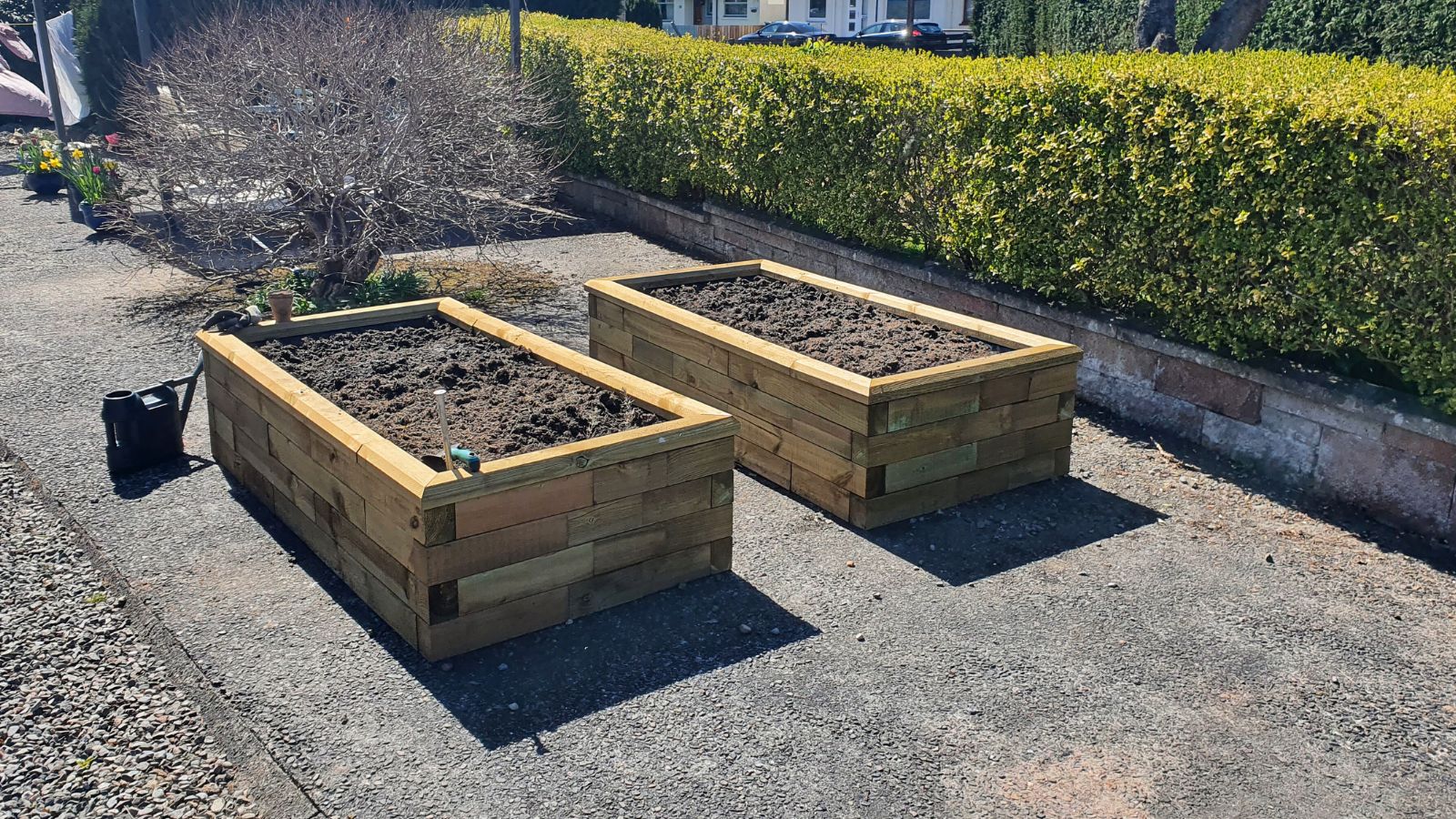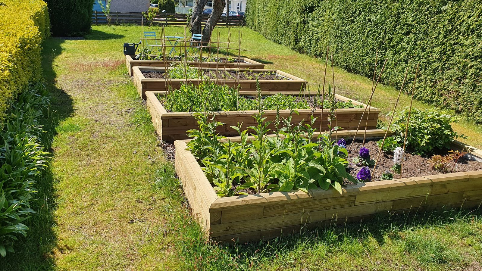 Il giardino di Dan è ora un vero e proprio paradiso per la coltivazione domestica con 6 orti rialzati, riempiti di compost di buona qualità. Le fioriere sono arricchite dal nostro terminale tradizionale che oltre a rifinire magnificamente le strutture, forma un bordo comodo e robusto su cui sedersi mentre ci si occupa delle piante.