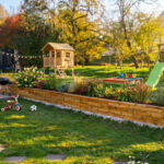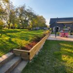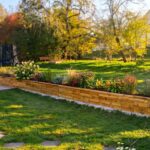 Un ottimo esempio di come un semplice muro di contenimento può trasformare un giardino, aggiungendo struttura e offrendo ulteriori spazio per coltivare.