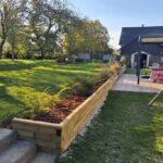 La fase di progettazione di un muro di contenimento con gradini è fondamentale per garantire una separazione armoniosa e funzionale tra il patio e il prato. I livelli sono stati misurati con attenzione e sono state valutate l’altezza e la profondità dei gradini. In questa fase è stato anche importante pianificare l’allineamento dei gradini con il patio e valutare come le piante si integreranno a progetto finito. La verifica che questi dettagli siano corretti fin dall’inizio contribuisce a creare un muro di contenimento bello e strutturalmente solido.