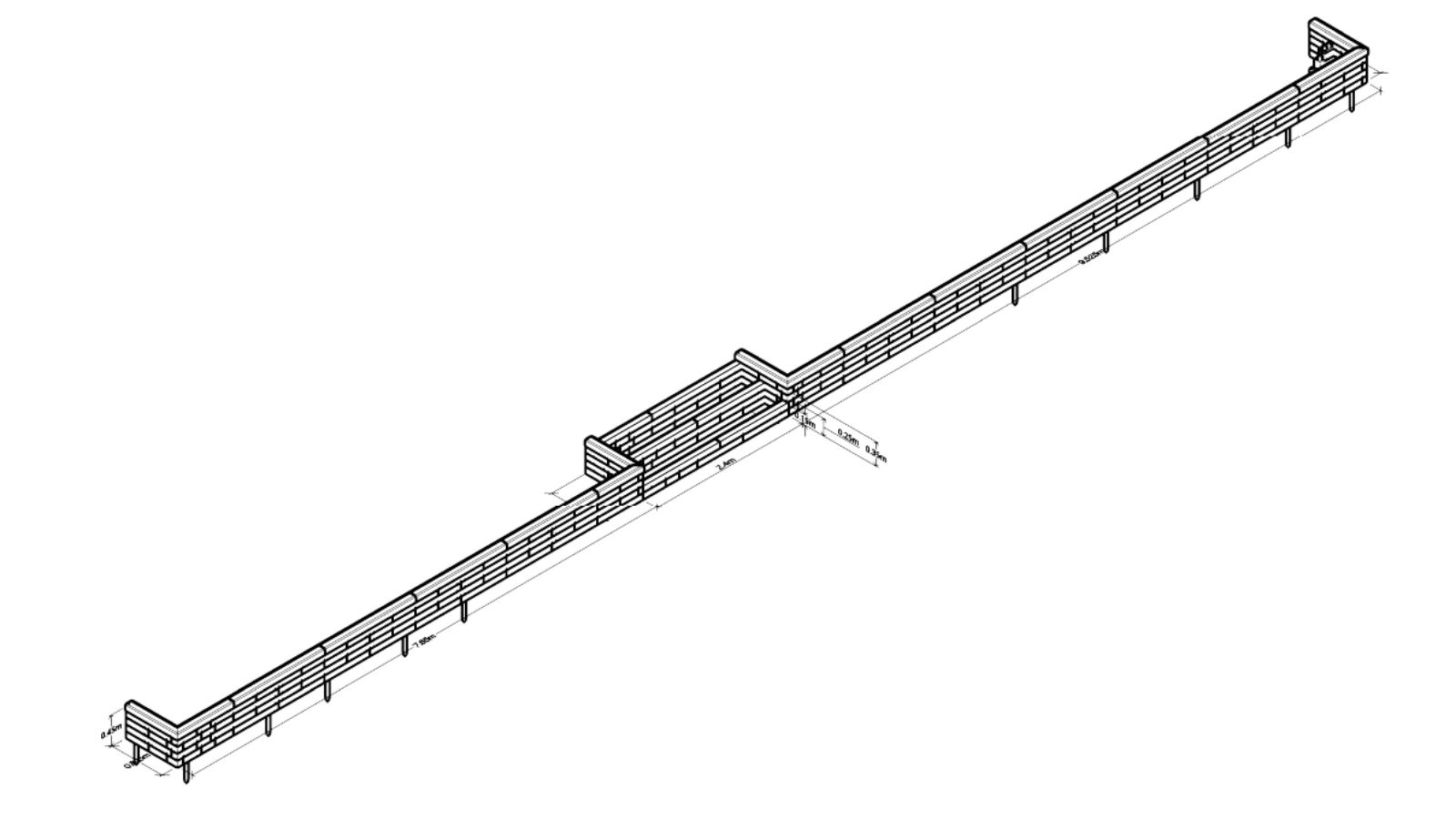 Vista la lunghezza e dell’altezza del muro di Thibaut, il progetto necessitava di contrafforti interni per fornire un ulteriore sostegno alla struttura del muro. Una volta rivestiti, riempita la struttura di terra e inserite le piante, i contrafforti non sono più visibili.