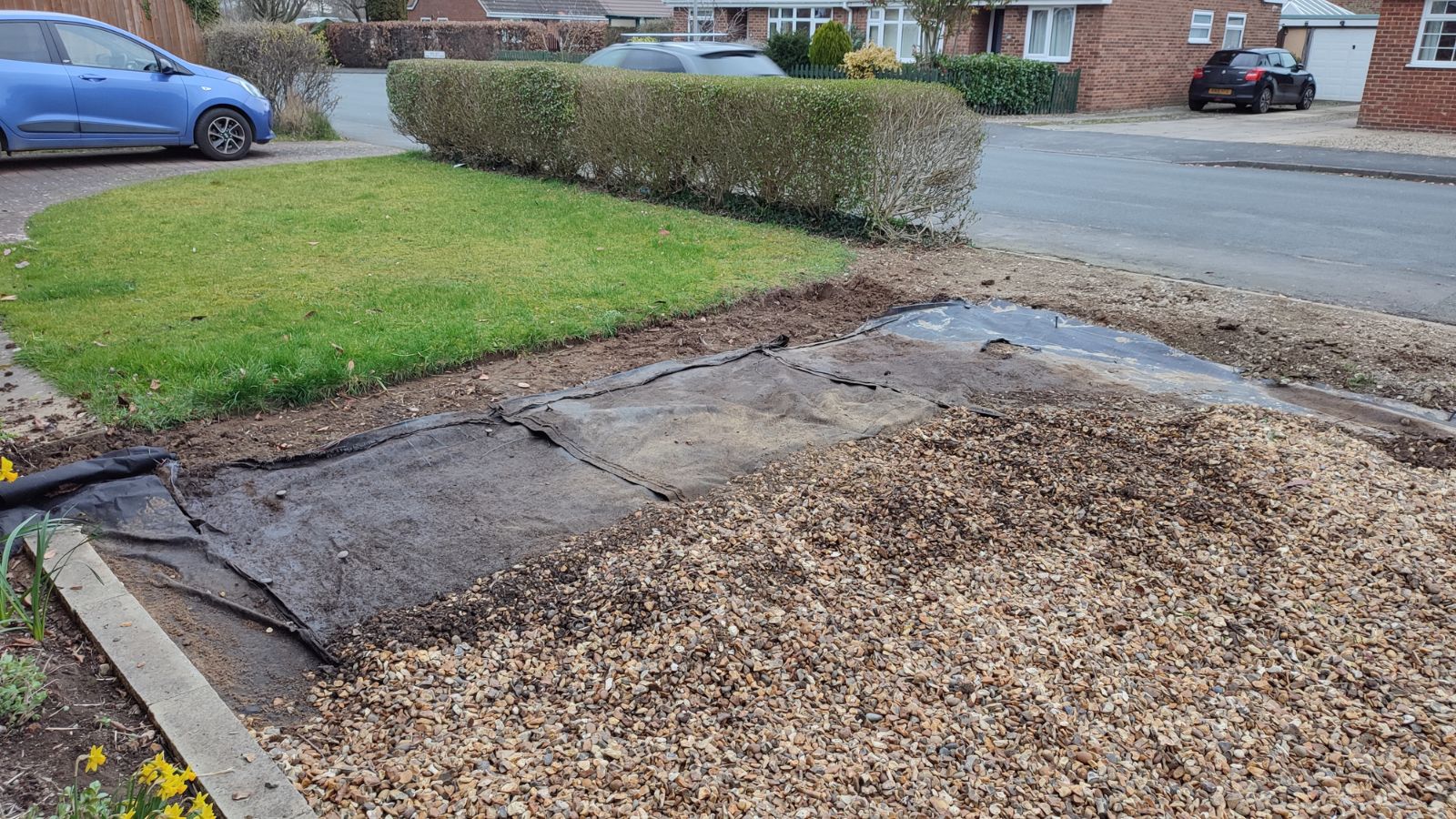 Per far entrare più luce in casa e ampliare lo spazio, era necessario rimuovere gli alberi. Andrea ha aspettato che gli uccelli lasciassero i nidi dopo il periodo di cova e pian piano ha rimosso gli alberi e gli arbusti, per prepararsi alla fase successiva della ristrutturazione del giardino anteriore.