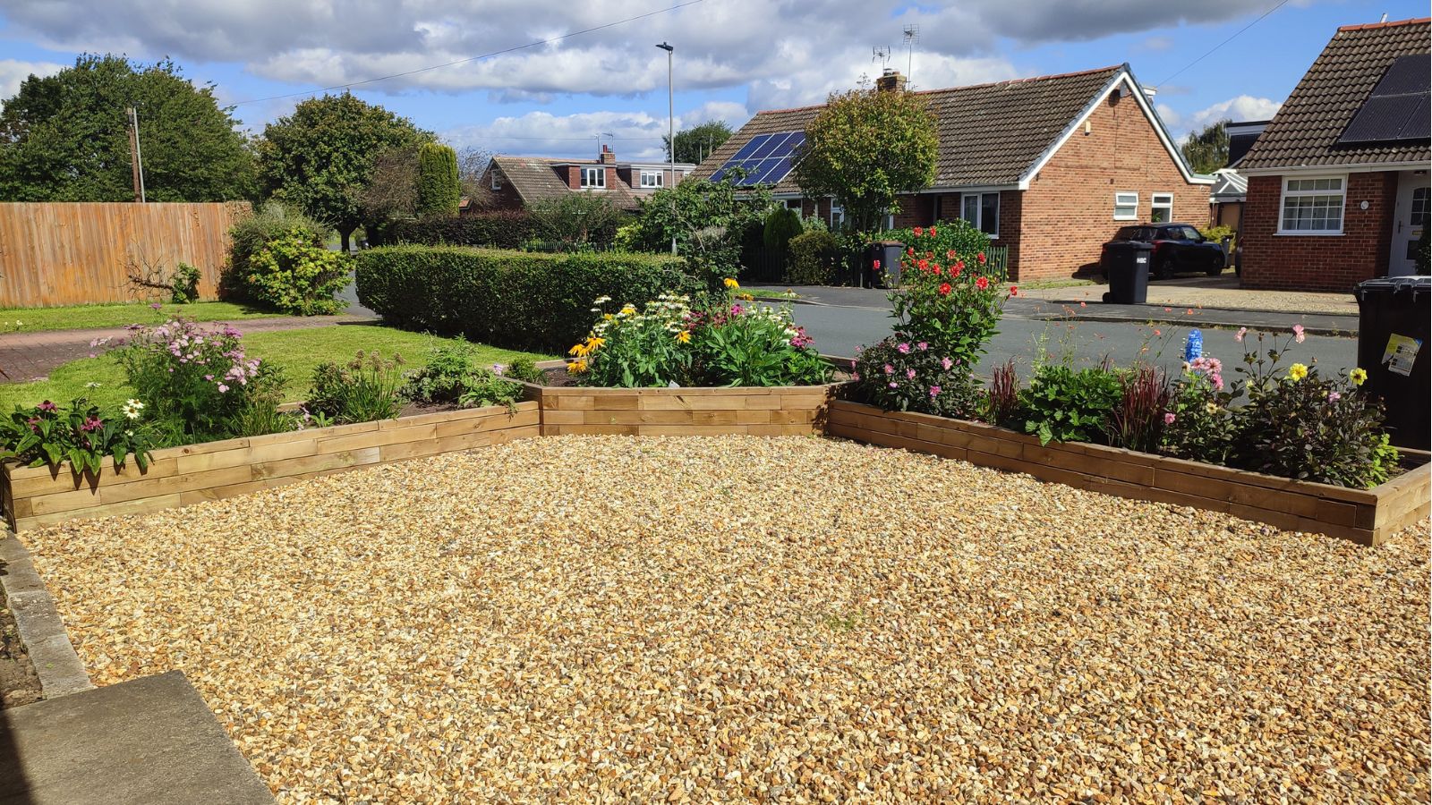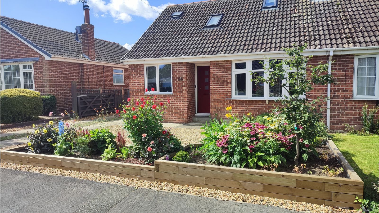 Il progetto dell’orto orto rialzato su misura WoodBlocX di Andrea costituisce un elemento di carattere nel suo giardino anteriore, il quale è diventato un gran bell’ambiente per parcheggiare l’auto! L’orto rialzato delimita il marciapiede e il vialetto di ghiaia, incorniciando lo spazio senza risultare invadente. Andrea ha riempito le strutture con un mix di piante e arbusti colorati. Il suo vialetto adesso è luminoso, vivace ed è stato completamente trasformato!