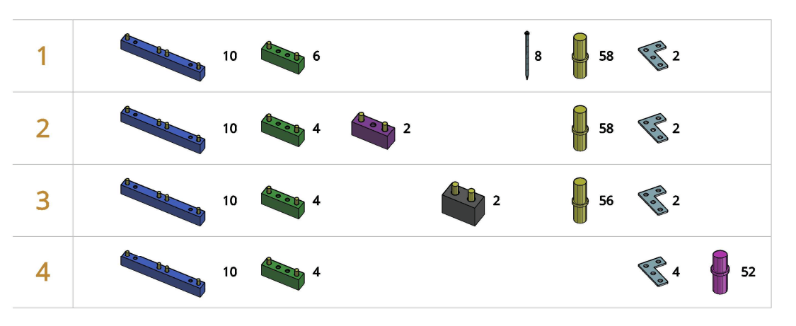 “Le piastre angolari rappresentate nelle istruzioni potrebbero rendere meno visibili le configurazioni necessarie ai blocchi sottostanti: osserva con attenzione il numero di tasselli che fuoriescono dalle piastre per essere sicuro di aver installato correttamente lo strato sottostante.”