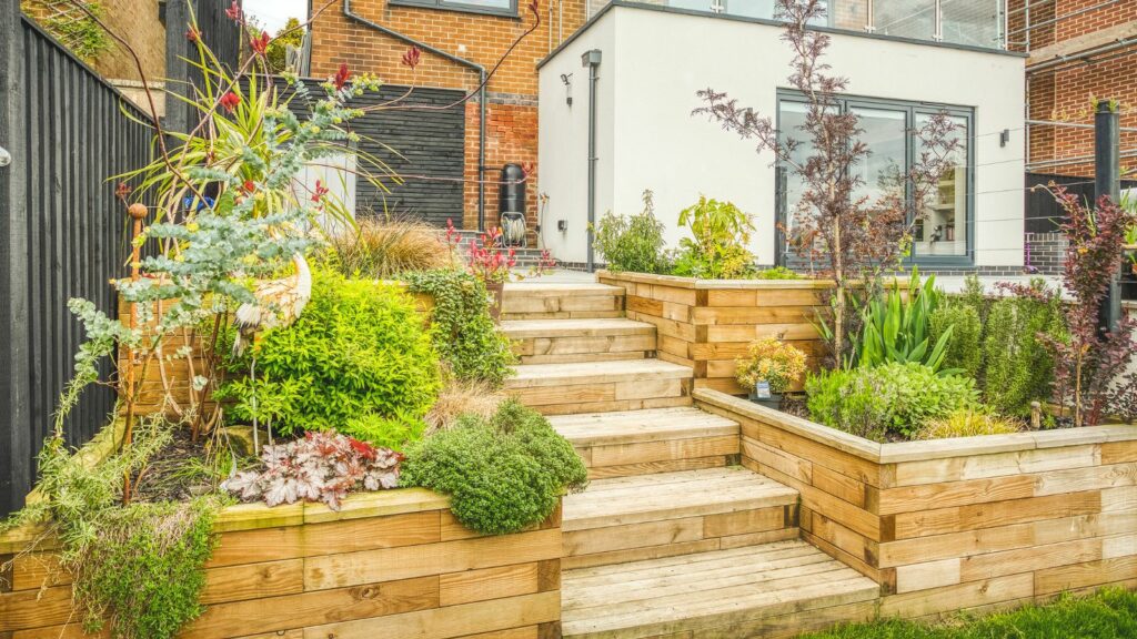 Dare nuova vita al tuo giardino è facilissimo con WoodBlocX! Basterà qualche piccolo intervento di riconfigurazione per trasformare dislivelli e collinette in terrazze, bordure e prati pianeggianti, anche integrando elementi come gradini, panchine e colonne. Costruire con WoodBlocX è molto più facile che usare le traversine!