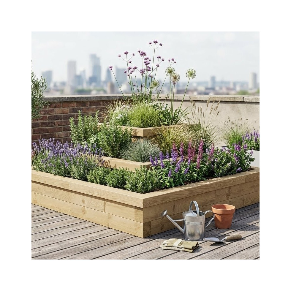 Trasforma un angolo anonimo del tuo spazio esterno con questo kit per orto rialzato a più livelli. Non è adatto solo per le erbe aromatiche... con ampio spazio per le piante, è ideale per coltivare fiori o ortaggi su diversi livelli: 0,25 m, 0,35 m e 0,55 m.