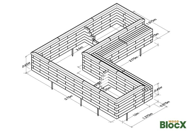 Un modello WoodBlocX molto popolare e fratello maggiore del nostro kit panca con fioriera piccola , questa fioriera a L è ideale anche per cortili scolastici e giardini benessere. Altezza seduta: 0,45 m, profondità seduta: 0,375 m. Le dimensioni interne dell'aiuola rialzata sono visibili nelle foto del prodotto. Consulta le istruzioni di montaggio strato per strato
