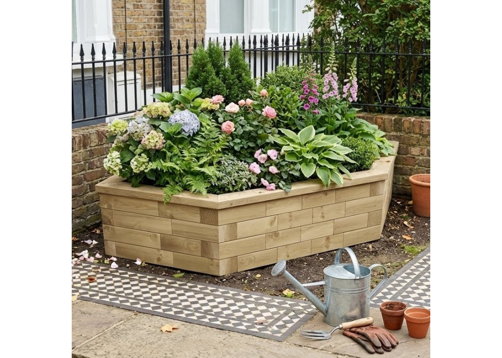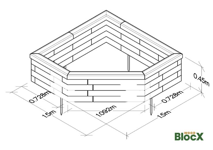 Porta un tocco di stile al tuo giardino con questa fioriera in legno a forma di diamante. I lati dritti sono lunghi 1,5 m ciascuno e il lato visibile ha tre facce. Perfetto per portare il verde in un angolo poco amato del giardino o del patio.