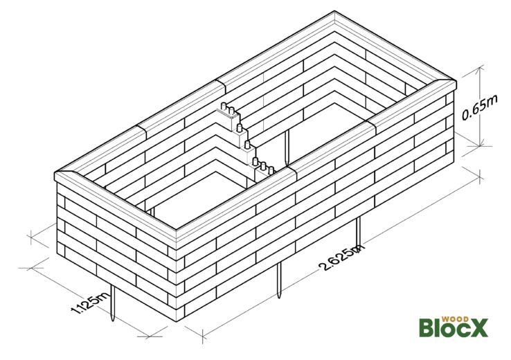 Medium Height Raised Bed / 2.625 x 1.125 x 0.65m
