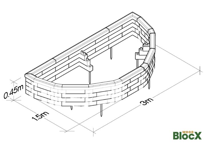 Semicircular Raised Bed / 3 x 1.5 x 0.45m