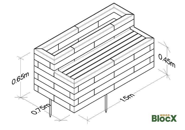 Progettato con una panca alta 0,45 m, lunga 1,5 m e profonda 0,375 m per te e pochi altri per sedersi comodamente, il vaso rialzato sul retro è alto 0,65 m, offrendoti l'opportunità perfetta per coltivare piante adatte per schermare o lo spazio per iniziare il tuo orto di erbe aromatiche.