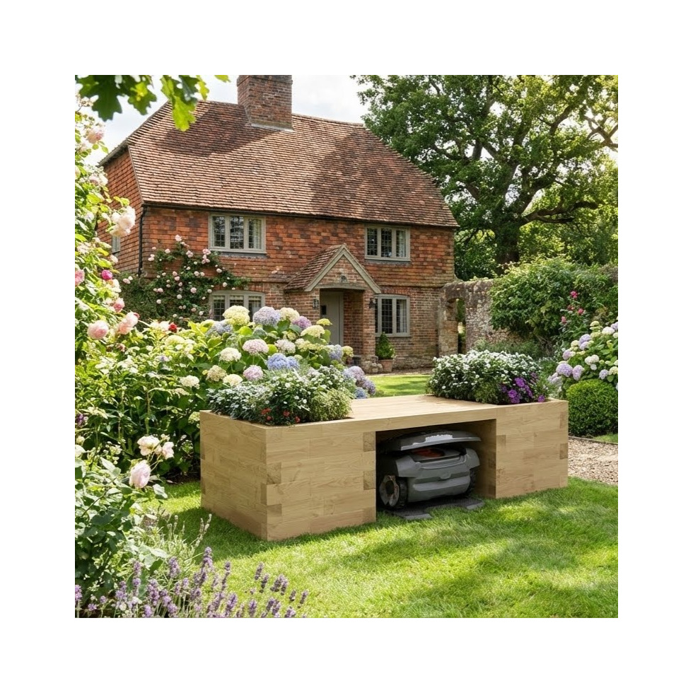 Abbiamo aggiornato la nostra fioriera per robot tagliaerba originale per includere una panca da giardino e aumentato le dimensioni dello spazio di stoccaggio del tagliaerba a 0,5 m di altezza e 0,825 m di larghezza. Le fioriere rialzate misurano 0,9 m x 0,6 m con un'area di piantumazione interna di 0,75 m x 0,45 m per tutto il tuo verde.