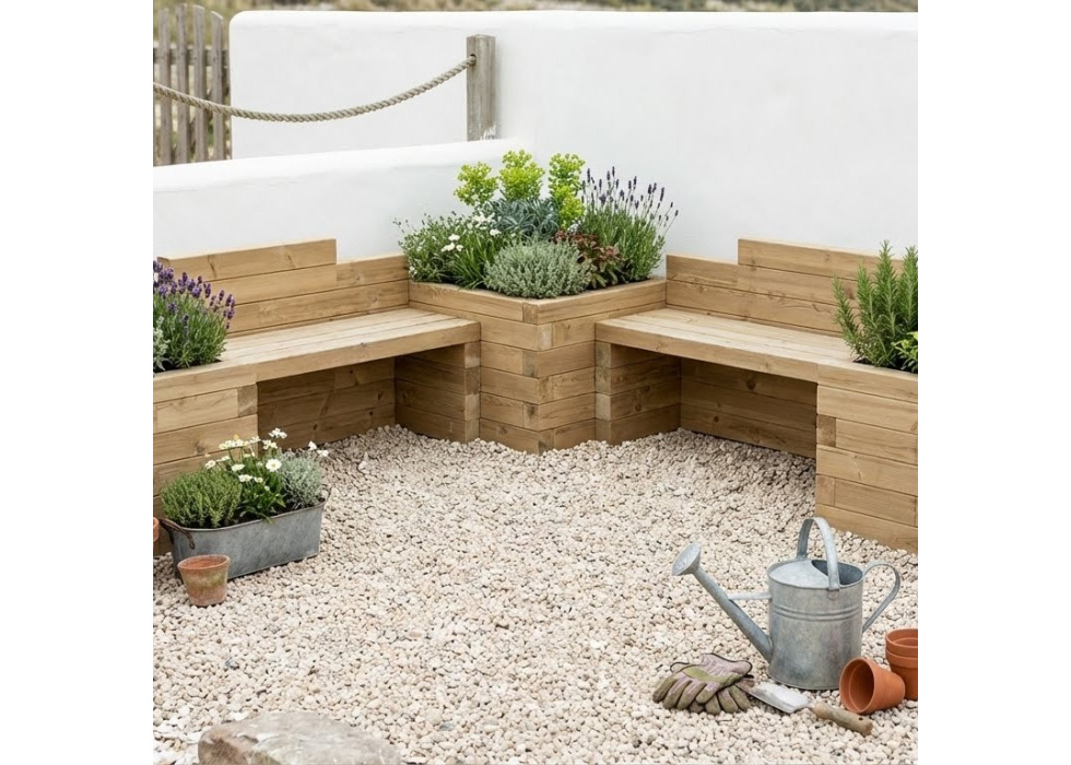Questo design angolare per panca con fioriera in legno è perfetto per riempire gli spazi vuoti nel tuo giardino. Utilizzare WoodBlocX è facile, poiché non richiede sollevamenti pesanti, viti o fori, il che significa che chiunque può costruirne una da solo. Altezza della seduta della panca: 0,45 m