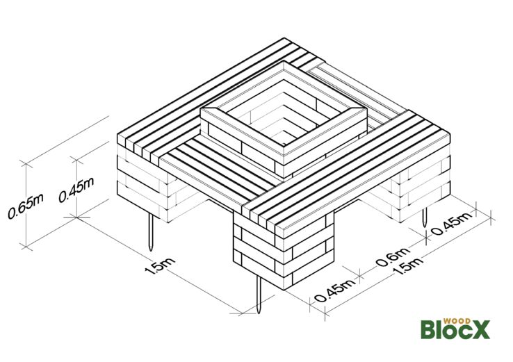 Four Sided Planter Seat with Central Bed / 1.5 x 1.5 x 0.45m