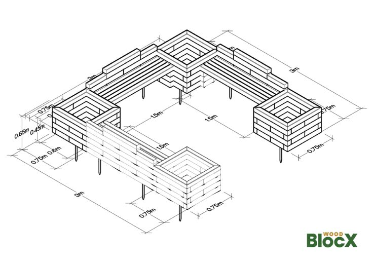 Per massimizzare la durata della struttura nel tempo, consigliamo vivamente di installare un rivestimento protettivo in grado di creare una barriera impermeabile tra il legno WoodBlocX e il terreno.