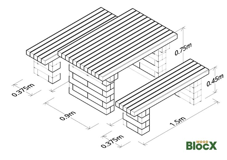 Table and Bench Set 1.5 x 1.65 x 0.75 m
