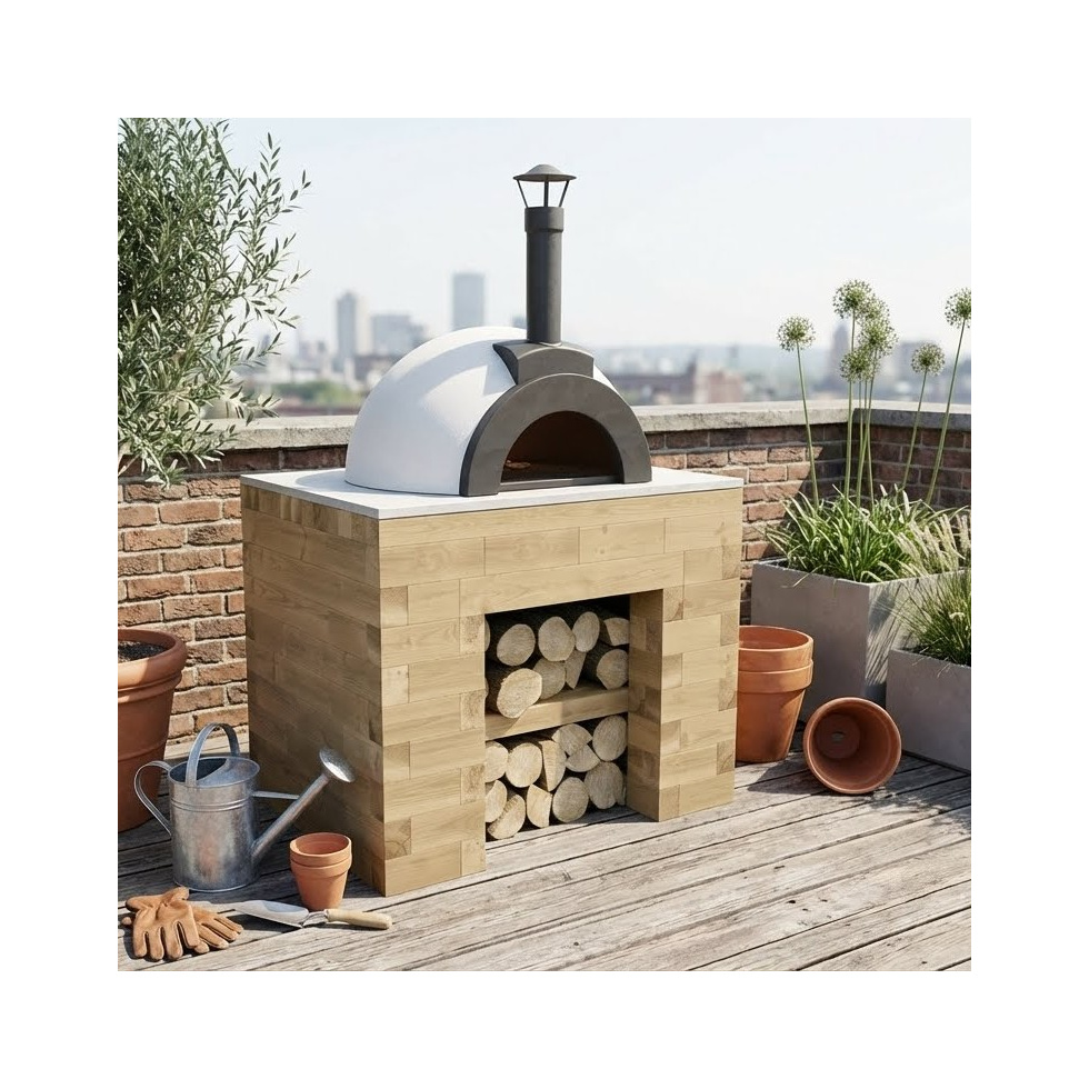 Regala al tuo forno per pizza un piano d'appoggio di cui essere orgoglioso! Robusto e con spazio per riporre la legna da ardere sottostante, questo kit da giardino in legno trasformerà la tua esperienza di cottura della pizza all'aperto.