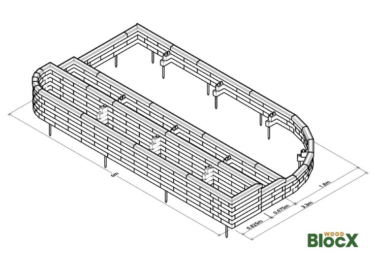 Per massimizzare la durata della struttura nel tempo, consigliamo vivamente di installare un rivestimento protettivo in grado di creare una barriera impermeabile tra il legno WoodBlocX e il terreno.